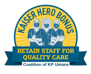 The Hero Bonus would not only reward workers’ resilience and courage but also make sure Kaiser has the workforce necessary to successfully take on the challenges ahead. Let’s join together to get the Hero Bonus— we earned it!
