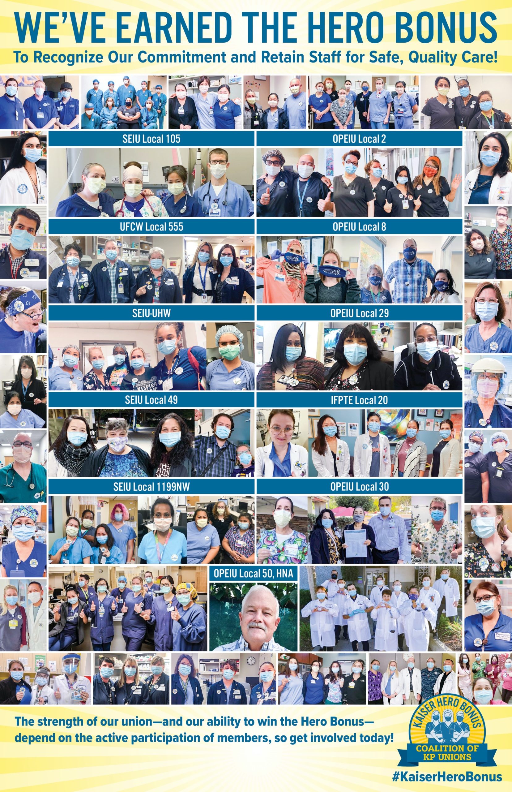 Please join our powerful action to let Kaiser execs know that the Hero Bonus is a moral imperative to retain staff for safe, quality care!