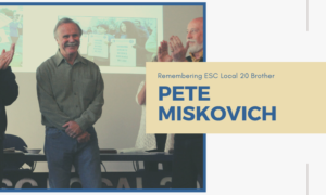 Long-time steward, bargaining team member, and overall staunch supporter of ESC Local 20, Pete “Petey” Miskovich will be dearly missed by his union family. Pete was a Principal Gas Mapper out of Sacramento and was always there as ESC’s “go-to” for gas mapping-related issues. Pete represented his fellow Mappers at PG&E for decades and always spoke truthfully and powerfully about the importance of their work. His work signature closed with UNION YES!